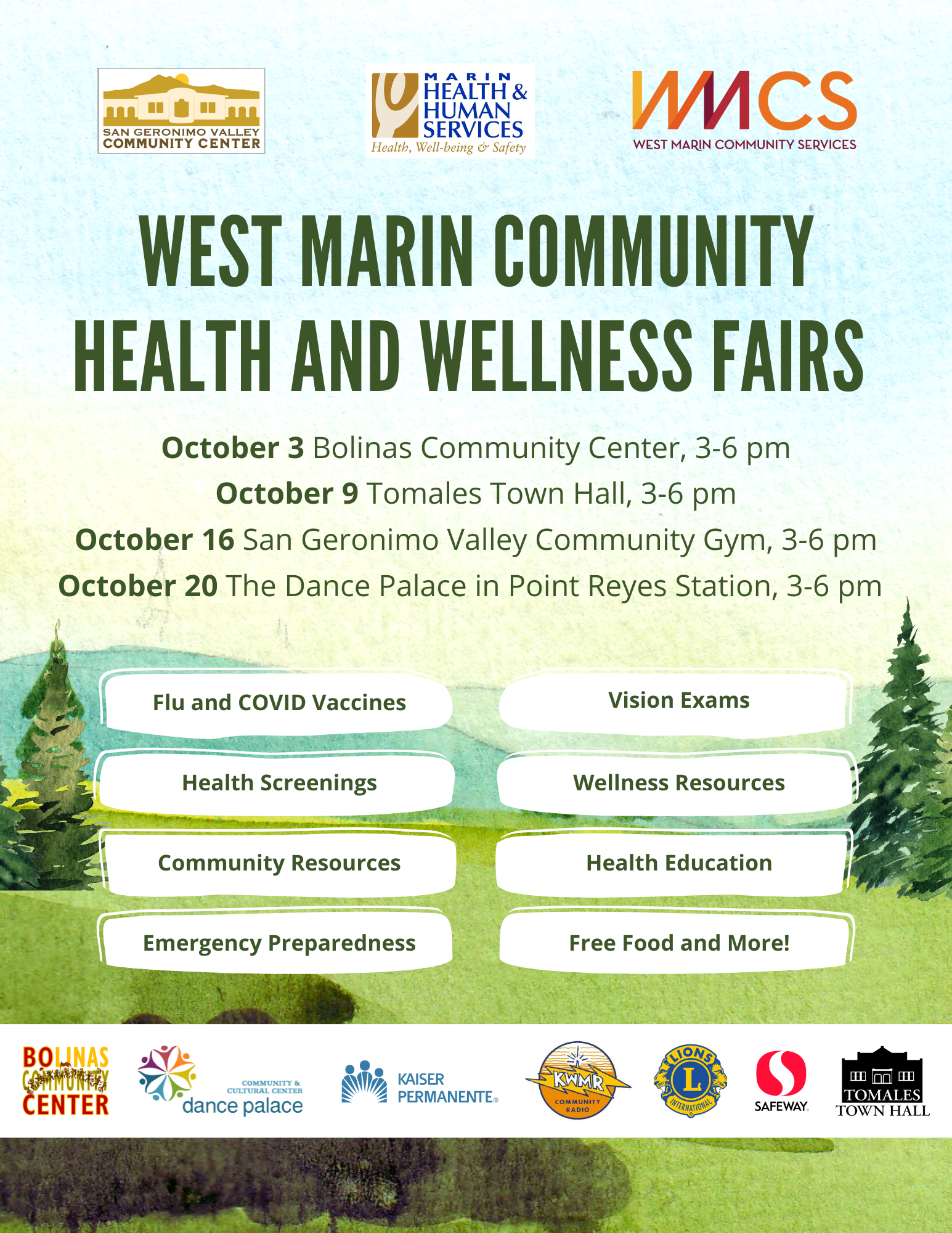 The West Marin Community Resiliency Team is a partnership between WMCS and San Geronimo Valley Community Center. The CRT was initially developed to respond to the COVID-19 pandemic and has since evolved to support broader public health priorities in West Marin.